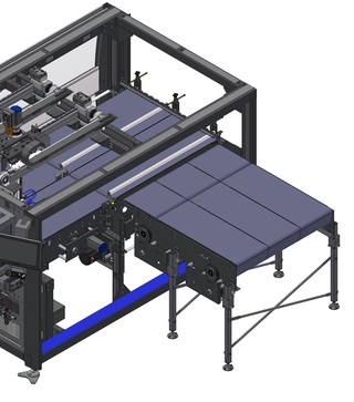 O processo de transferência de linha é gerenciado por uma barra motorizada. Depois que uma linha é formada, ela é empurrada imediatamente para a cabeça de carga (cesto). O sistema também é equipado com uma placa “morta” (buffer), que permite continuar as operações de push-in em linha, mesmo quando a cabeça ainda não está na posição de carregamento.
