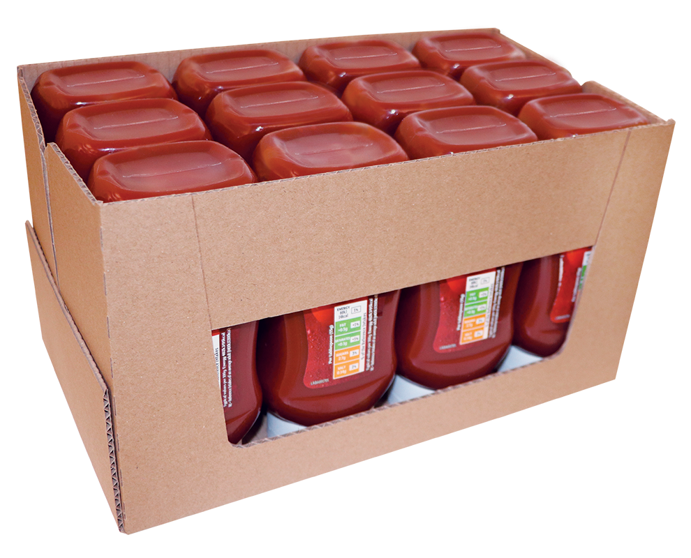 Tag: Caixa Wrap-around - Embalagem shelf-ready - Garrafas PET - Garrafas PP - Alimentos e produtos para animais - Molhos - 3x4 packs